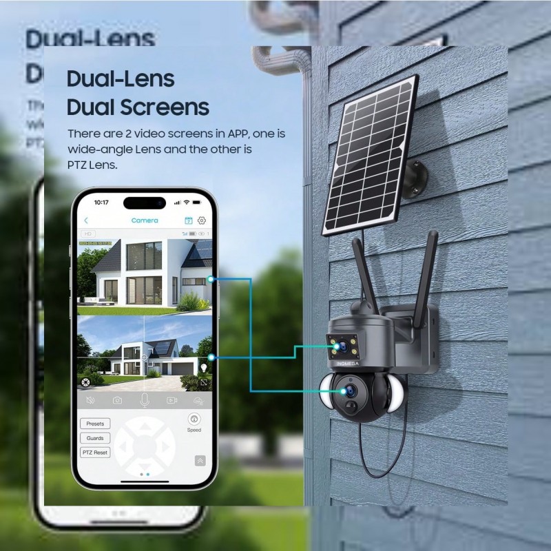 1 pieza INQMEGA Cámara de solar de 6MP 4G LTE con doble lente, detección de movimiento PIR y notific