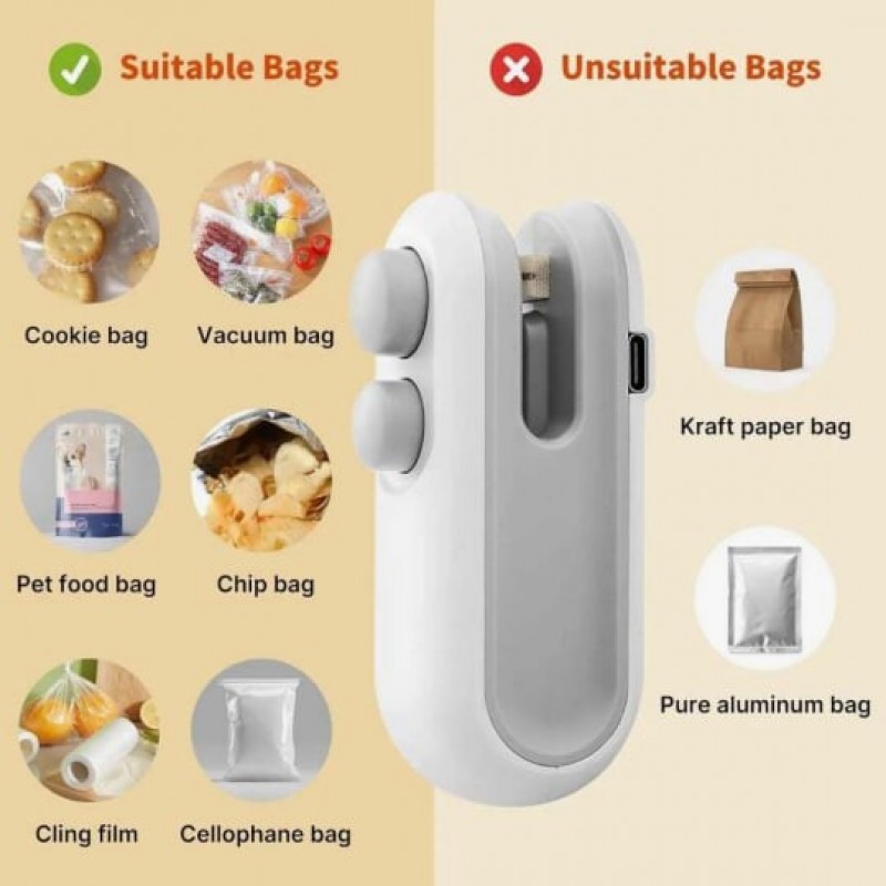 Mini sellador de bolsas de aperitivos, sellador de almacenamiento de alimentos, sellador portátil. C