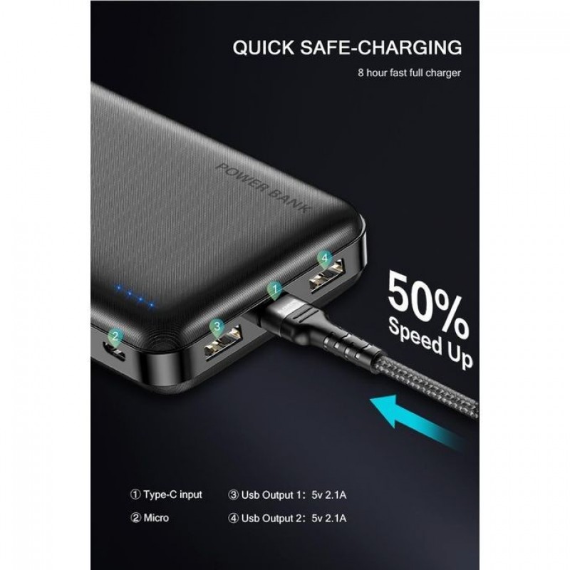 The dual USB output ports support multiple charging protocols, making it a partner in your travels that won't let you down. The Power-Bank P2W (20000mAh) can charge at up to 18W (12V, 1.5A/9V, 2.0A), cutting back significantly on charging time.