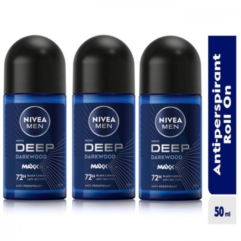 NIVEA MEN Deep Anti-Perspirant Roll-on For Men, 72h - 50ml (Pack of 3)