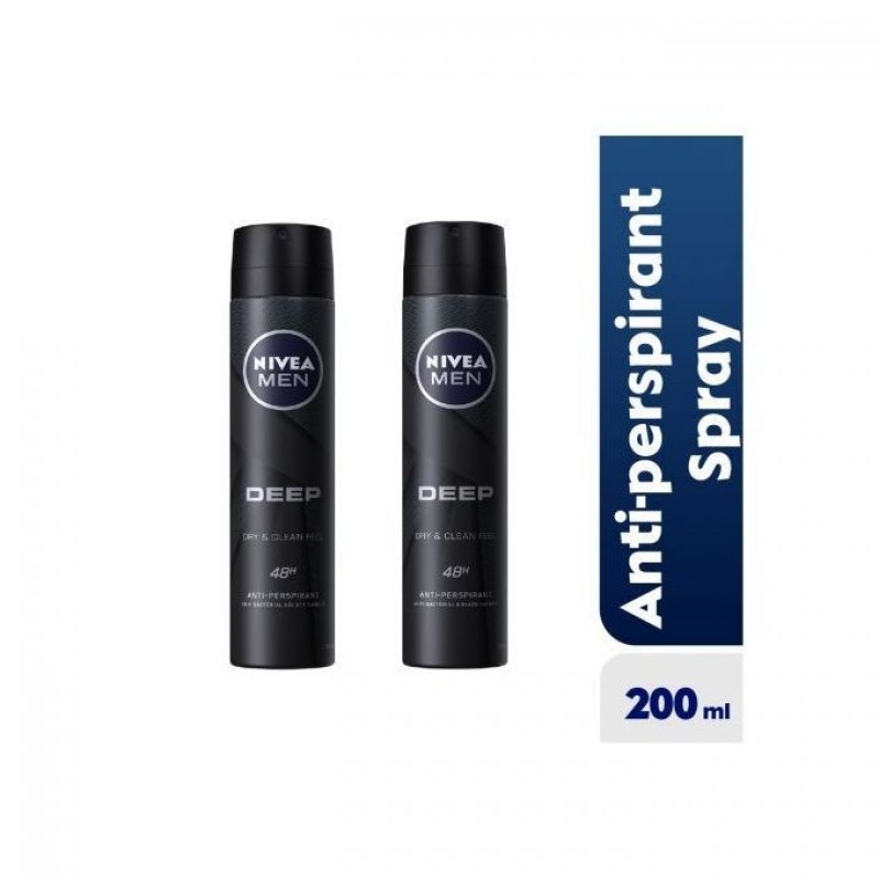 NIVEA Deep Anti-Perspirant Spray For Men 48h - 200ml (Pack Of 2)