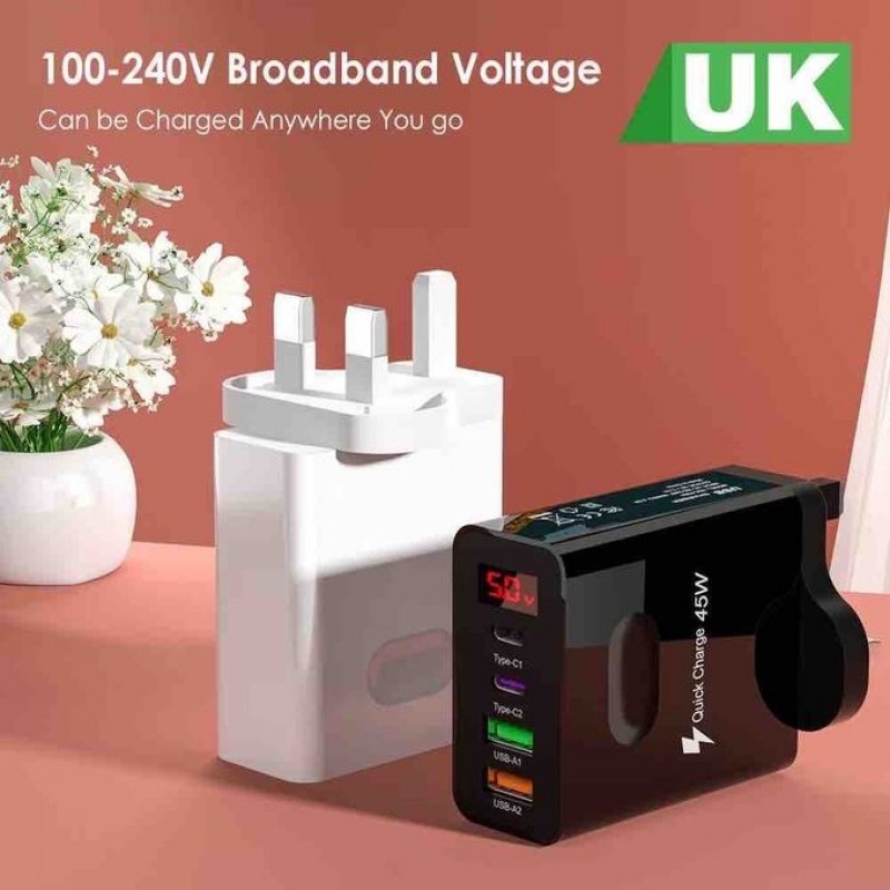 Head 45W Charger Head 4Port Typec + USB Digital Display