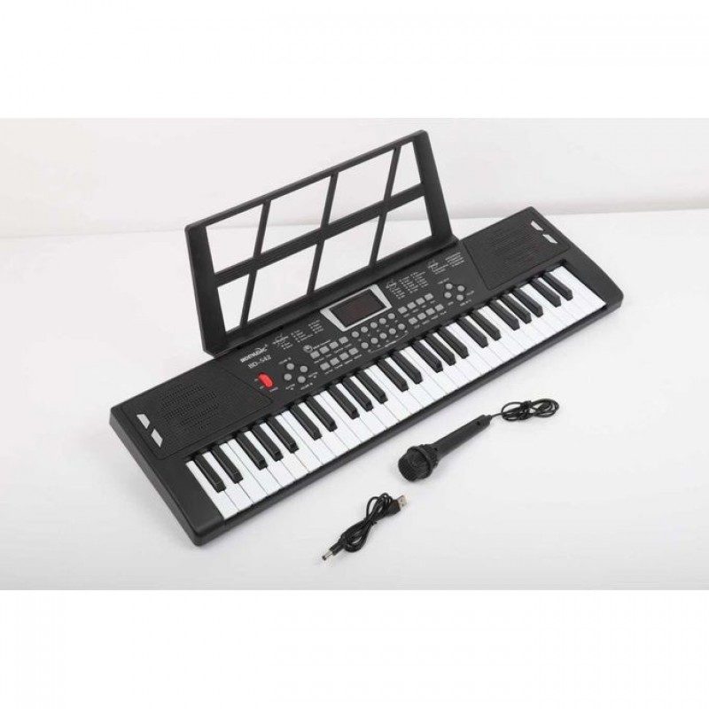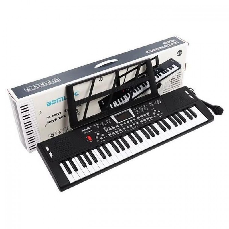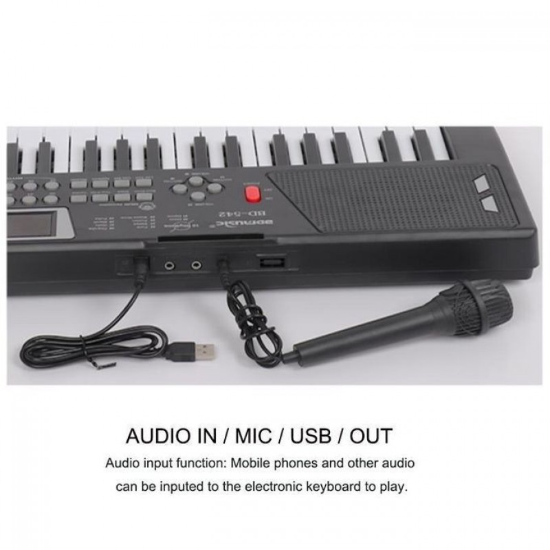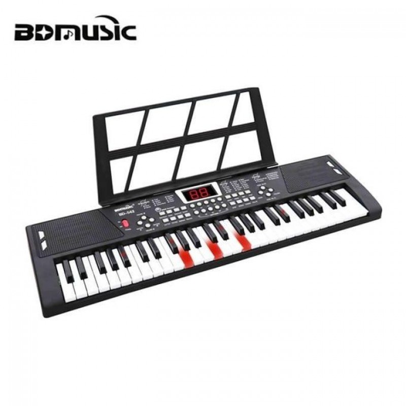 This is a mini  Lighting 54keys children piano keyboard. It can be operated by batteries( unscrew the battery compartment at the back side) or DC Adapter  (the batteries are not Included) Features: