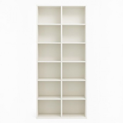 Maximize vertical space with this modern 2x6 storage cabinet, featuring 12 uniform open cubes ideal for books, files, décor, or display items. With its tall, slim profile and clean light-colored finish, this unit is perfect for modern interiors where storage efficiency meets minimalism.