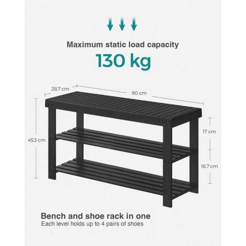 Declutter Your Space: Featuring 2 bamboo shelves, this bench can neatly store at least eight pairs of shoes. The top shelf provides a handy surface for your work bag, wallet, or other essentials.