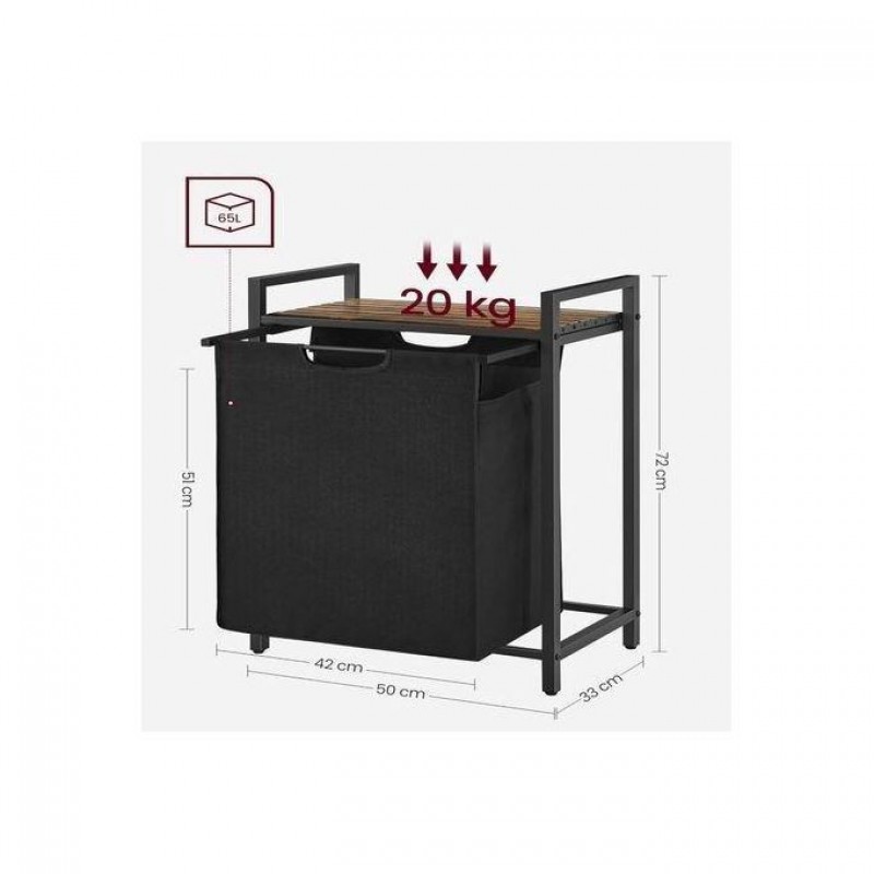 LASA 65L Laundry Basket - Compact Design, Pull-Out Liner & Storage Shelf